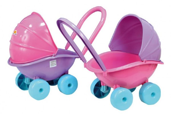Kvalitní hluboký oválný kočárek z plastu ve tvaru vajíčka v holčičích barevných kombinacích, pro všechny malé maminky a jejich panenky