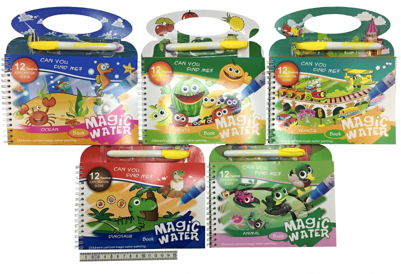 Použití:Naplňte tělo pera vodou a důkladně ho uzavřete. Na malém kousku papíru lehce zmáčkněte, abyste vodu dostali až do štětce. Poté můžete začít malovat. Pokud vodu z pera vypotřebujete, pero opět naplňte a můžete pokračovat. Když voda z papíru uschne, můžete začít malovat znovu. K opakovanému vybarvní nabízí knížka 4 krásné celostránkové motivy.